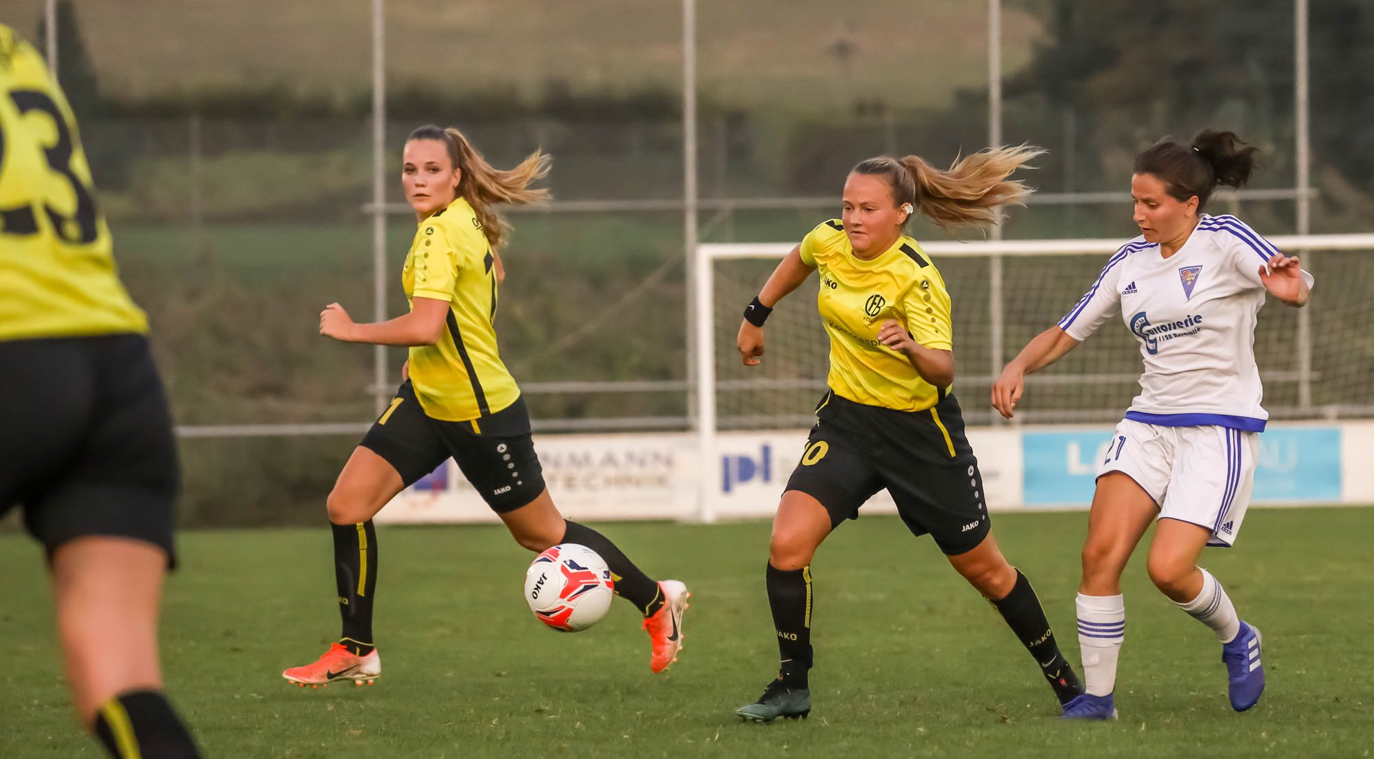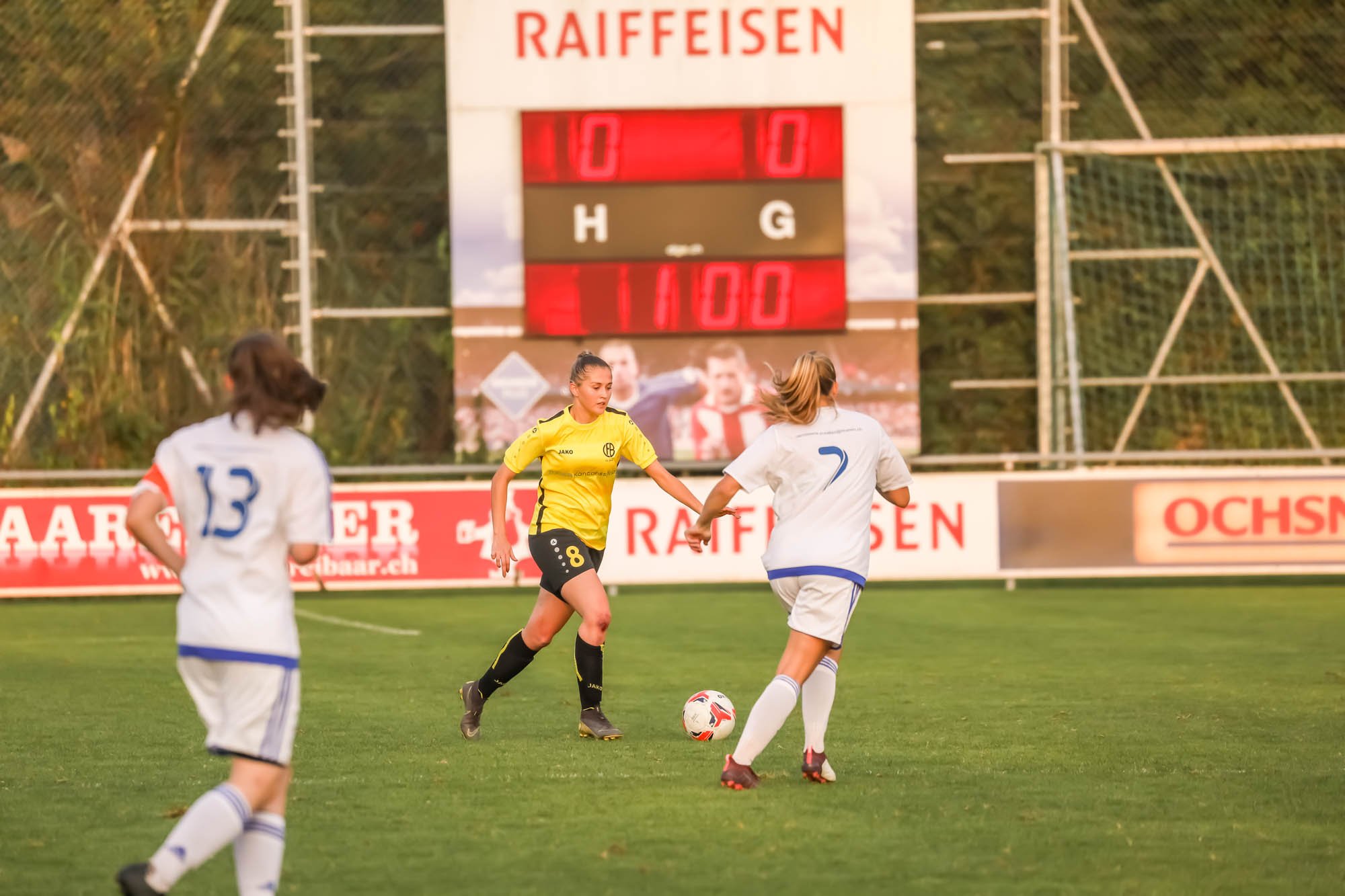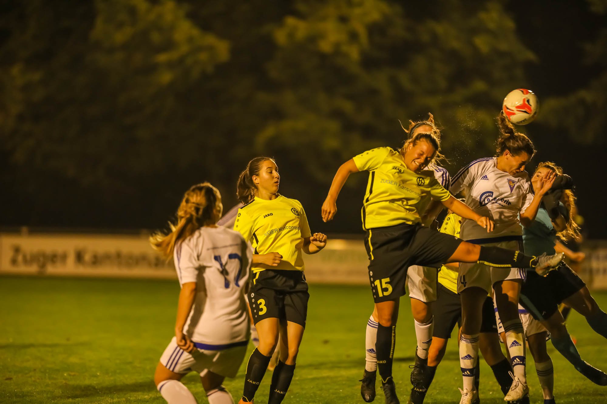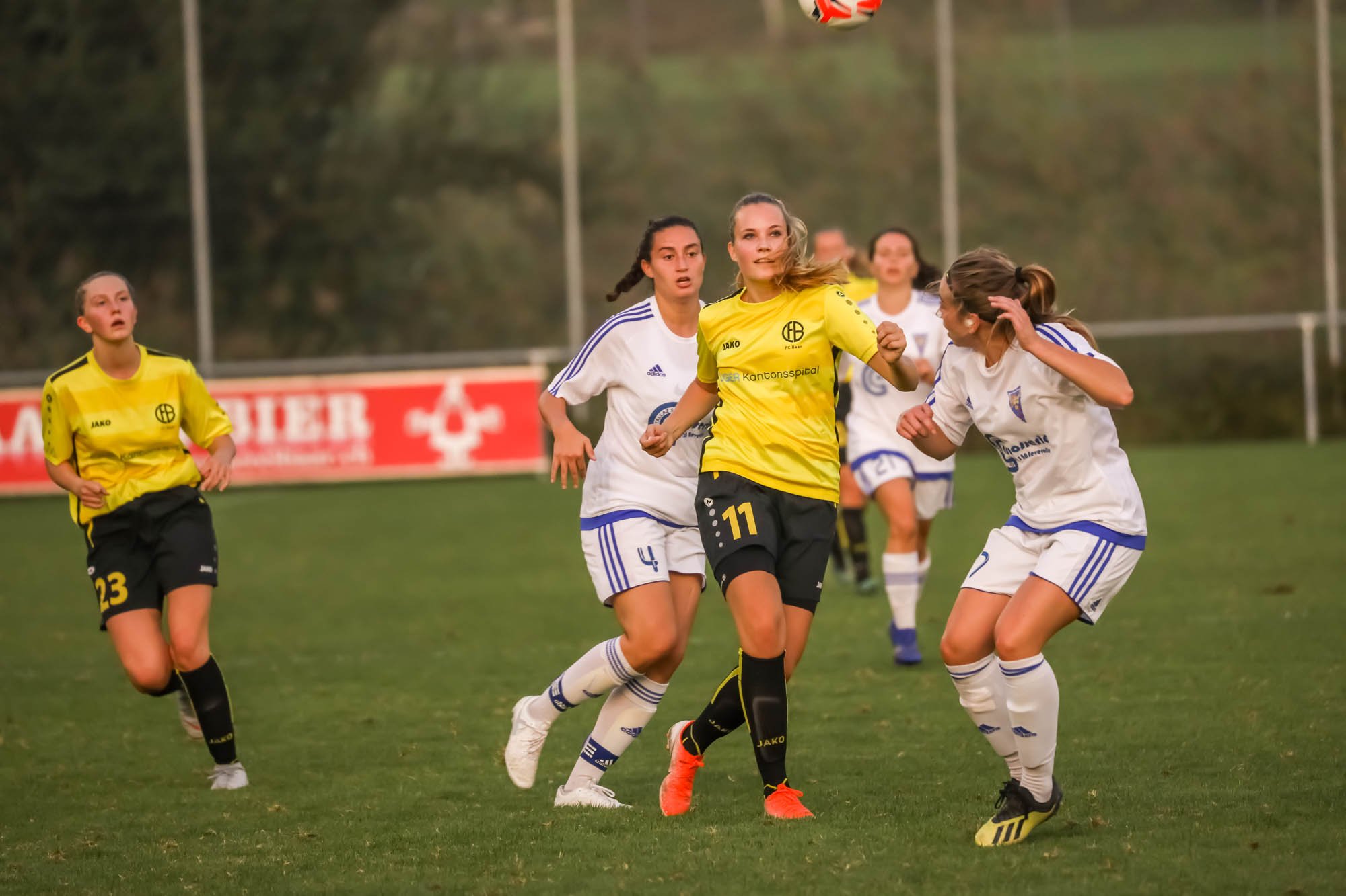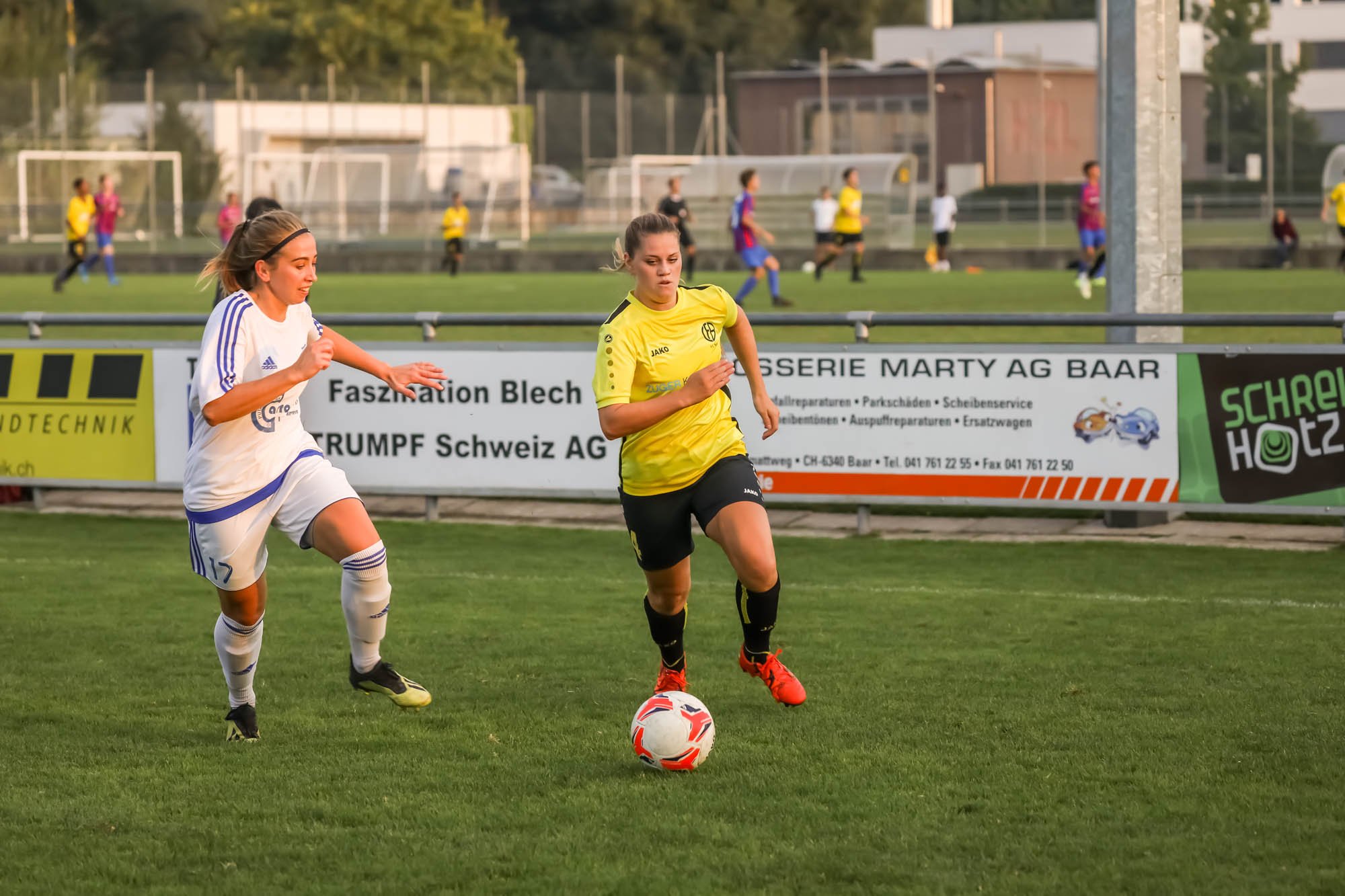 Die Frauen des FC Baar empfingen mit dem FC Pied du Jura diesen Samstag den Tabellenletzten auf dem Lättich. Jedoch durfte man auch diesen Gegner nicht unterschätzen, denn die Resultate vergangener Spiele waren keinesfalls eindeutig. Deshalb brauchte es wie immer einen konzentrierten Start in das Spiel. Dies gelang den Gastgeberinnen nicht zu hundert Prozent und so waren die ersten Spielminuten etwas chaotisch und von einigen Fehlpässen geprägt. Die Gäste wollten dies ausnutzen und versuchten immer wieder durch hohe Bälle die Baarer Abwehr zu überwinden. Prompt gelang in der 23. Minute einer dieser Vorstösse und wurde, entgegen dem Spielverlauf, mit dem 1:0 belohnt. Dies liessen die Baarerinnen jedoch nicht lange auf sich sitzen. Wenige Minuten später gelingt Alicia Birchler mit einem Schuss aus der 2. Reihe der Ausgleich. Auch weiter hatten die Baarer Frauen mehr Ballbesitz und erarbeiten sich einige Chancen, welche aber ausgenommen von einem Kopfball von Furrer kurz vor der Pause nicht sehr gefährlich wurden.