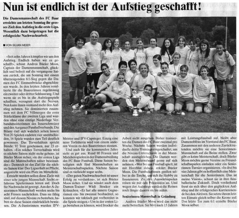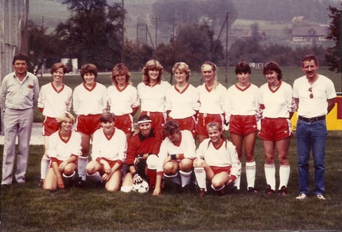 hintere Reihe: Susanne Pfister, Miriam Villiger, Irene Huber, Daniela Stierli, Regula Aebersold, Karin Villiger, Andrea Büeler, Sandra Weber, Trainer: Remi, vordere Reihe: Maria Rasmussen, Sandra Faragolo, Romina Lira, Petra Wigger, Lisi Oliveira, Claudia, Fatima Oliveira, Cinzia Verta